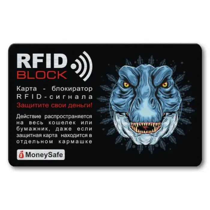 Защитная RFID-карта Тиранозавр — это надежное решение для защиты средств на бесконтактных банковских картах. Эта карта из тонкого металла обеспечивает безопасность всего кошелька или бумажника, даже находясь в отдельном кармашке. Упаковка в прозрачный полипропиленовый пакетик позволяет сохранить карту в идеальном состоянии и предотвращает царапины на пластиковых картах при хранении. Идеальный выбор для тех, кто ценит безопасность своих финансов и хочет избежать нежелательных ситуаций с кражей данных. В народе такие карты традиционно используются как эффективное средство защиты от мошенничества с картами.