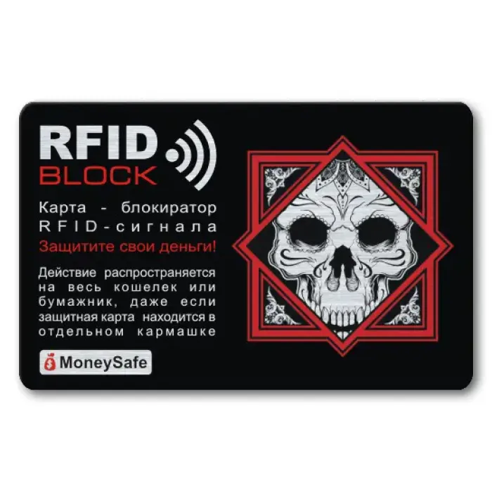 Защитная RFID-карта Череп из тонкого металла обеспечивает надежную защиту средств на бесконтактных банковских картах. Эта карта эффективно блокирует несанкционированный доступ к данным, действуя на весь кошелек или бумажник, даже если она находится в отдельном кармашке. Упакована в прозрачный полипропиленовый пакетик, что позволяет избежать повреждений и царапин на пластиковых картах при хранении. Рекомендуется оставлять карту в пакетике для максимальной защиты и долговечности. Такой аксессуар станет незаменимым помощником для тех, кто ценит безопасность своих финансов.