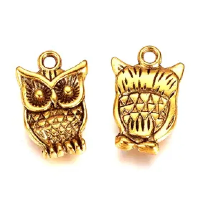 Подвеска для бижутерии в форме совы из бижутерного сплава с покрытием.