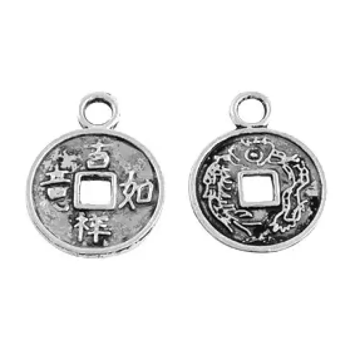 Подвеска для бижутерии Китайская монетка 17х13мм, цвет серебр. FP2013