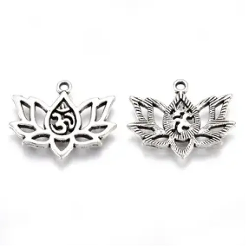 Подвеска для бижутерии с символикой лотоса и ом. Материал — бижутерный сплав с покрытием.