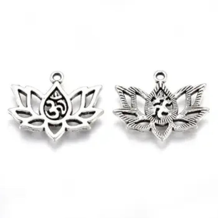 Подвеска для бижутерии Лотос и Ом 16х20мм, цвет серебр. FP2030