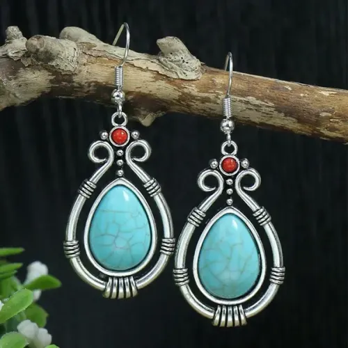 Серьги Капля с бирюзой, 5,5х2х1см SE187