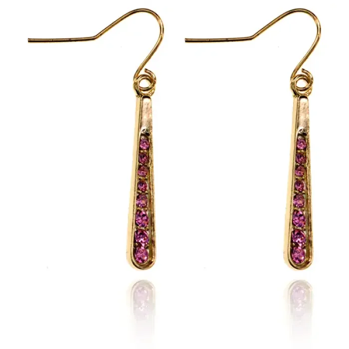 Серьги-сувенир в форме капли, выполненные из бижутерного сплава с розовым покрытием и стразами.