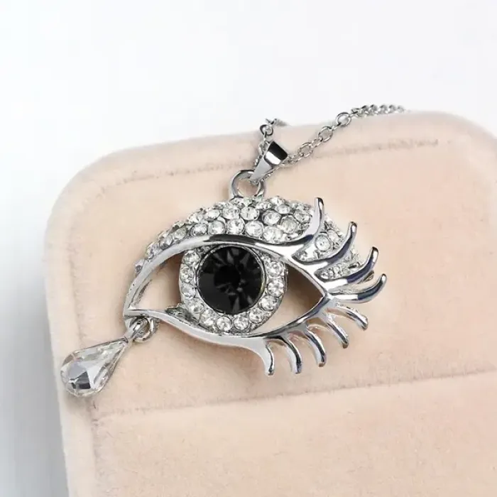 Кулон с цепочкой в виде глаза из бижутерного сплава с кристаллами.