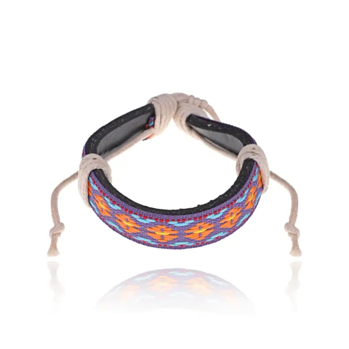 Браслет из натуральной кожи и ткани с орнаментом.