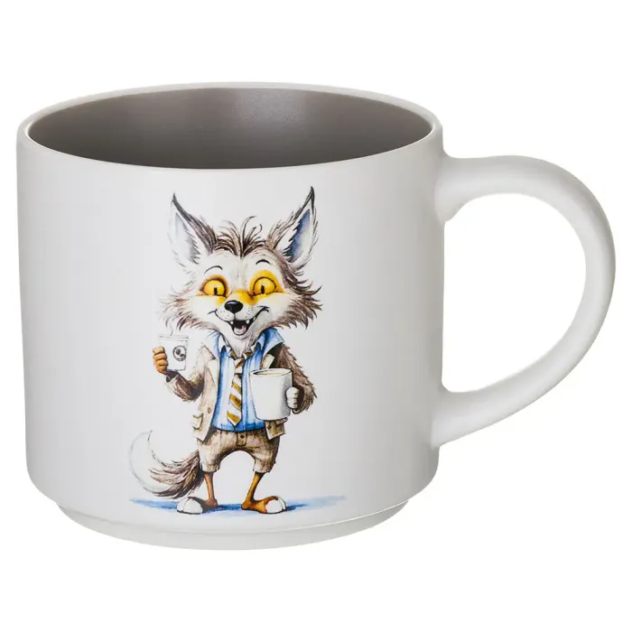 Кружка выполнена из фарфора, что обеспечивает прочность и термостойкость изделия. Поверхность покрыта глазурью для гигиеничности и простоты ухода. Удобная ручка облегчает использование.