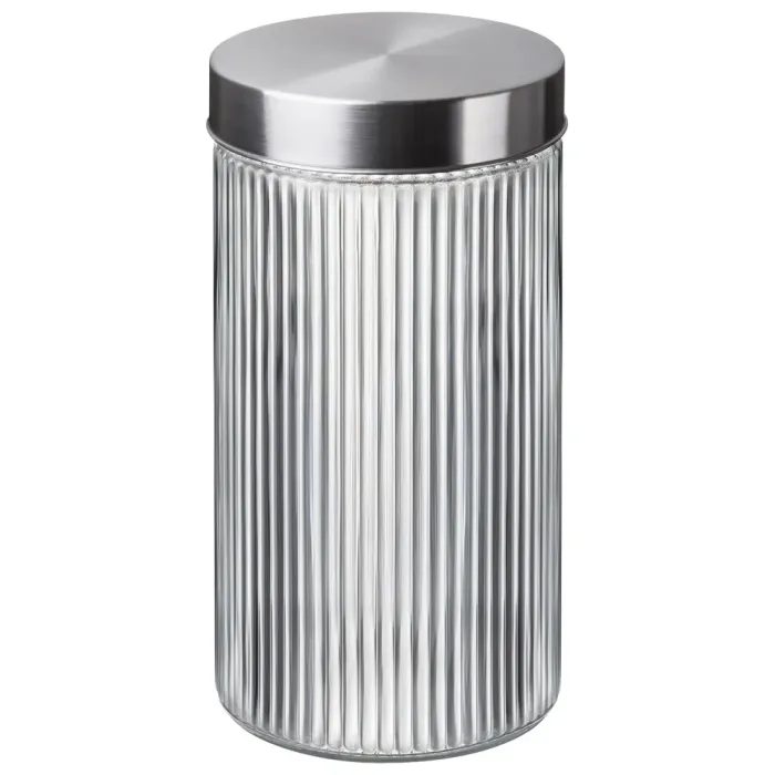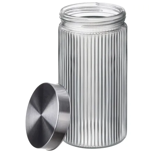 Корпус емкости изготовлен из стекла, что позволяет визуально контролировать количество продукта и облегчает уход. Металлическая крышка обеспечивает герметичное закрытие, предохраняя содержимое от влаги и посторонних запахов. Конструкция изделия отличается лаконичным дизайном серии Lines.