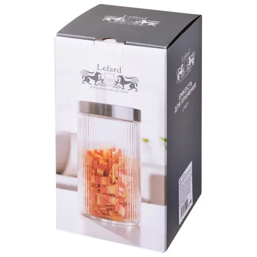 Емкость для хранения Lines объемом 1.6 л от бренда Lefard предназначена для хранения сыпучих продуктов на кухне. Основные преимущества — использование стекла для корпуса и металла для крышки, что обеспечивает гигиеничность и защиту содержимого.