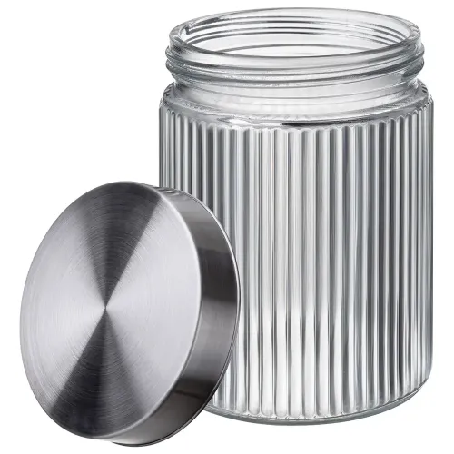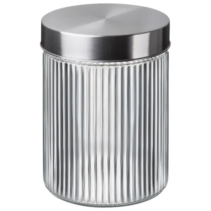 Прозрачные стенки из стекла позволяют визуально контролировать количество содержимого. Металлическая крышка с уплотнением обеспечивает герметичное закрытие, способствуя сохранению свежести продуктов. Гладкая поверхность материалов облегчает процесс очистки.