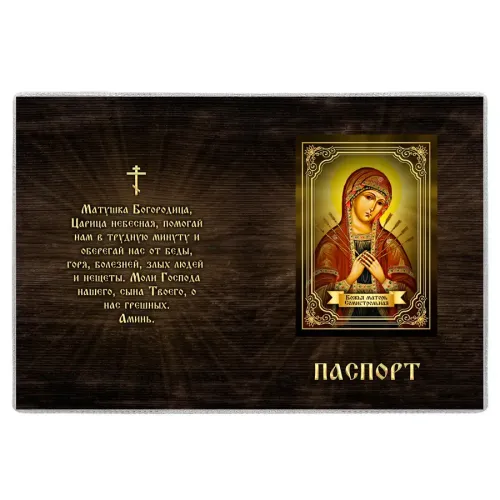 Обложка для паспорта с изображением Пресвятой Богородицы — это не только практичный аксессуар, но и символ веры и защиты. Изготовленная из прозрачного ПВХ-пластика, она надежно сохраняет паспорт в идеальном состоянии. Полиграфическая вставка добавляет эстетическую ценность, подчеркивая духовный контекст данного изделия.