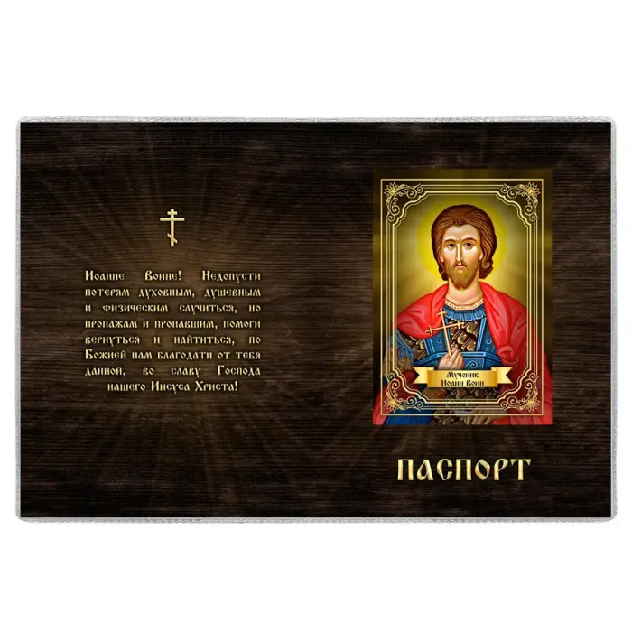 Обложка для паспорта с изображением святого Иоанна Воина — это не только практичный аксессуар, но и символ защиты и благословения. Изготовленная из прозрачного ПВХ-пластика, она надежно сохранит паспорт от повреждений и загрязнений. Полиграфическая вставка добавляет эстетическую привлекательность, а упаковка в полипропиленовый пакет с подвесом под еврокрючок делает ее удобной для хранения и транспортировки. Такой аксессуар станет отличным подарком или сувениром для тех, кто ценит духовные традиции.