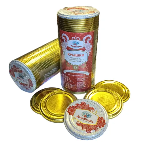 Крышки изготовлены из металла с защитным покрытием, устойчивым к коррозии. Внутреннее уплотнительное кольцо обеспечивает герметичность при консервировании. Дизайн с нанесённым рисунком выполняет также эстетическую функцию.