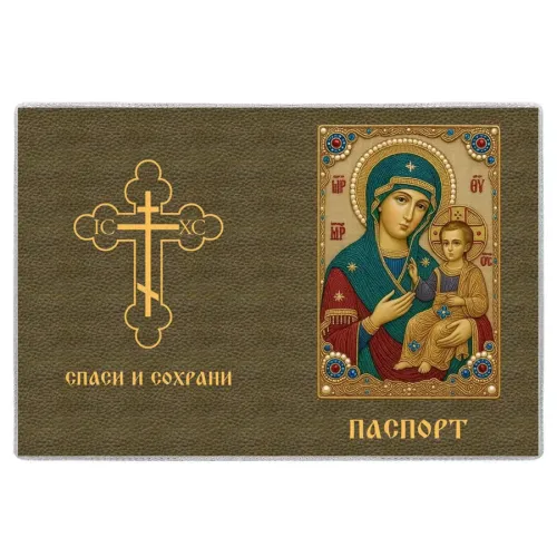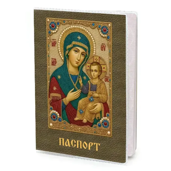 Обложка для паспорта, украшенная изображением Божьей Матери с Иисусом, является не только практичным аксессуаром, но и символом веры. Изготовленная из прозрачного ПВХ-пластика, она надежно защитит паспорт от повреждений и загрязнений. Полиграфическая вставка придаёт изделию уникальный стиль и эстетическую привлекательность.
