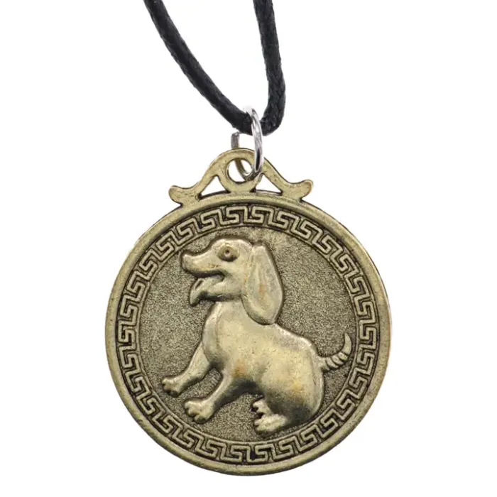 Кулон-амулет, символизирующий год Собаки в восточном гороскопе. Изготовлен из бижутерного сплава с покрытием под бронзу.