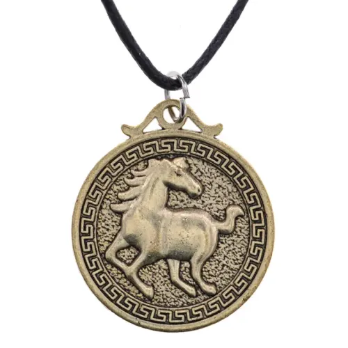 Амулет Восточного гороскопа в виде кулона, символизирующий Год Лошади. Изготовлен из бижутерного сплава с покрытием под бронзу.