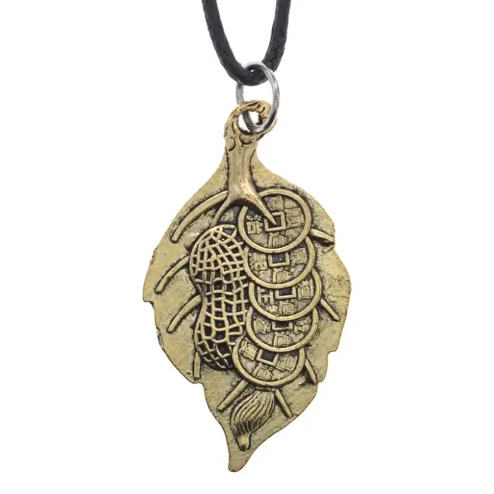 Кулон-амулет «Золотой лист богатства» из бижутерного сплава с покрытием под бронзу.
