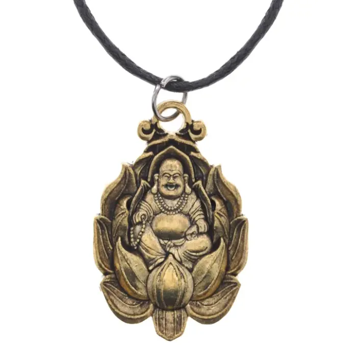 Кулон-амулет из бижутерного сплава с покрытием под бронзу в виде Будды Майтрейи в лотосе.