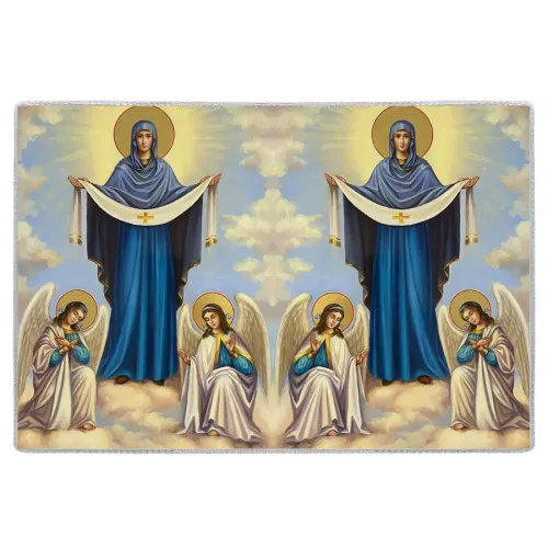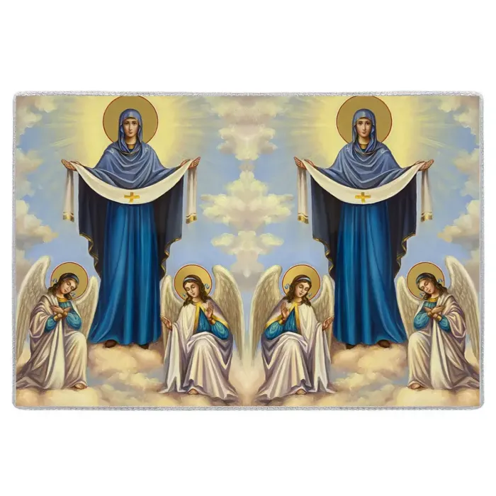 - Полиграфическая вставка с изображением Покрова Божьей Матери добавляет эстетическую ценность.