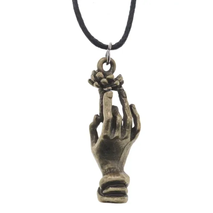 Амулет-кулон в виде руки с цветком лотоса из бижутерного сплава.