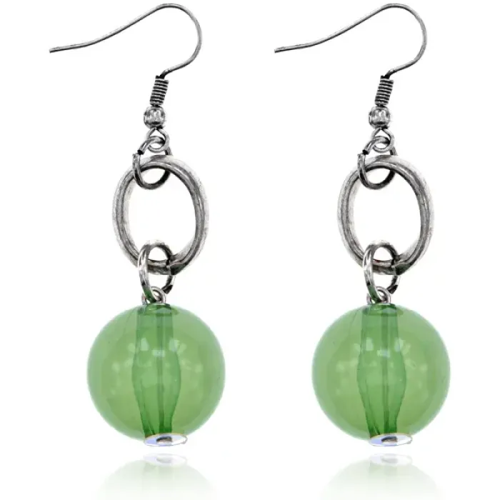 Серьги в виде шара зелёного цвета. Бижутерный сплав с покрытием под серебро, замок типа петля.