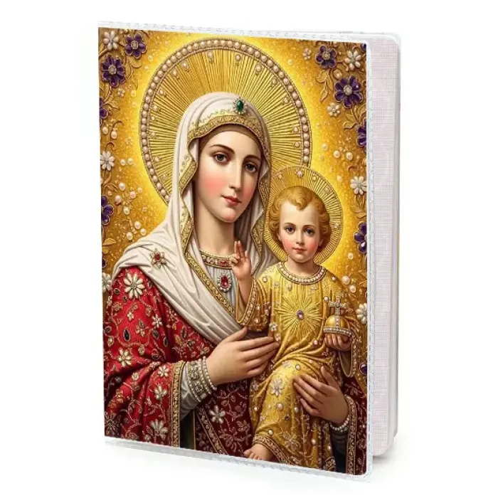 Обложка для паспорта с изображением Богородицы и Иисуса — это не только практичный аксессуар, но и символ веры. Изготовленная из прозрачного ПВХ-пластика, она надежно защищает паспорт от повреждений и загрязнений.