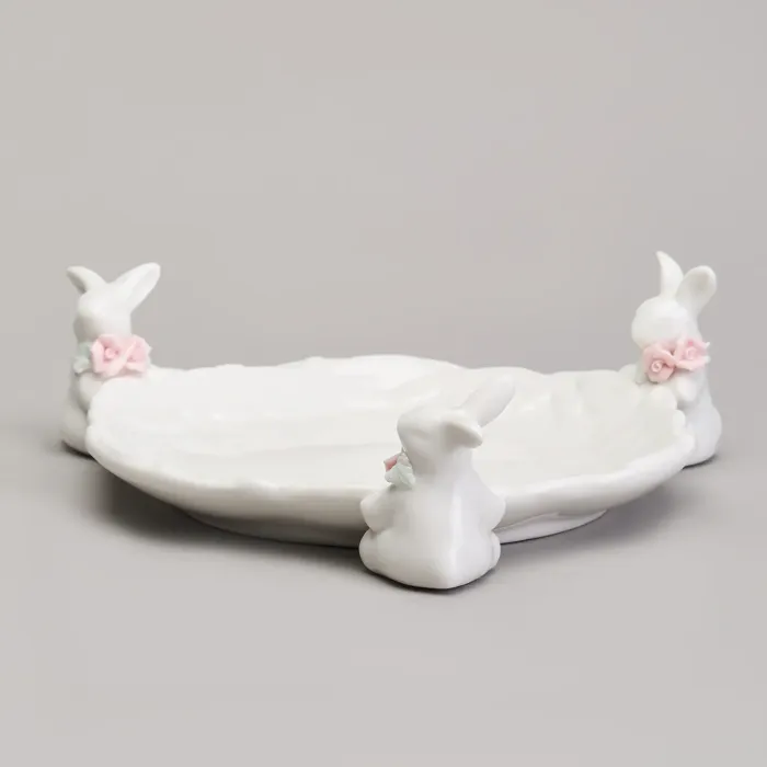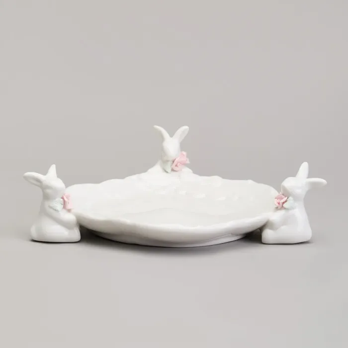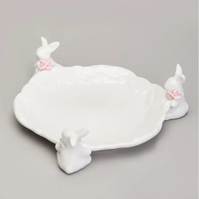 Сервировочное блюдо Lefard предназначено для подачи различных блюд и украшения стола. Изделие изготовлено из фарфора и декорировано изображением кроликов, что делает его тематическим элементом для праздничной сервировки.