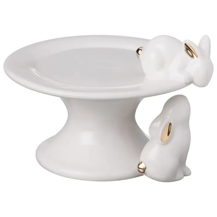 Блюдо выполнено из фарфора, материала, известного своей прочностью и устойчивостью к воздействию пищевых кислот. Конструкция на ножке приподнимает содержимое, облегчая доступ и придавая сервировке классический вид. Поверхность изделия гладкая, что облегчает уход.