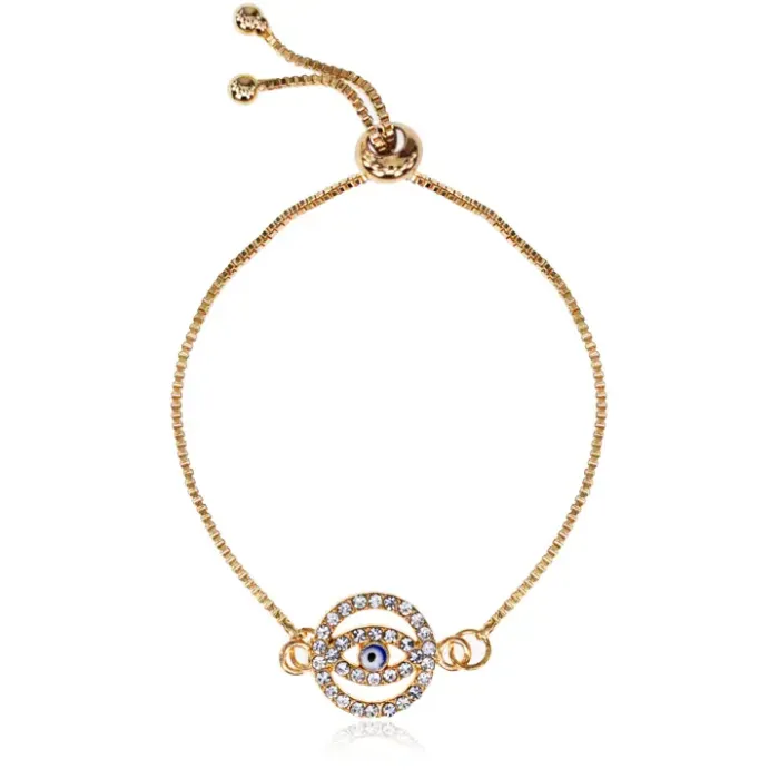 Безразмерный браслет из бижутерного сплава с золотым покрытием, эмалью и вставками из страз. Коннектор диаметром 14 мм.