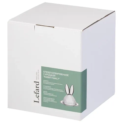 Сервировочное блюдо с крышкой из серии Rabbit Family от бренда Lefard предназначено для подачи и хранения различных блюд. Изделие выполнено из прозрачного стекла, что позволяет визуально контролировать содержимое. Ключевыми особенностями являются оригинальный рельефный край и декоративные элементы в виде ушек.