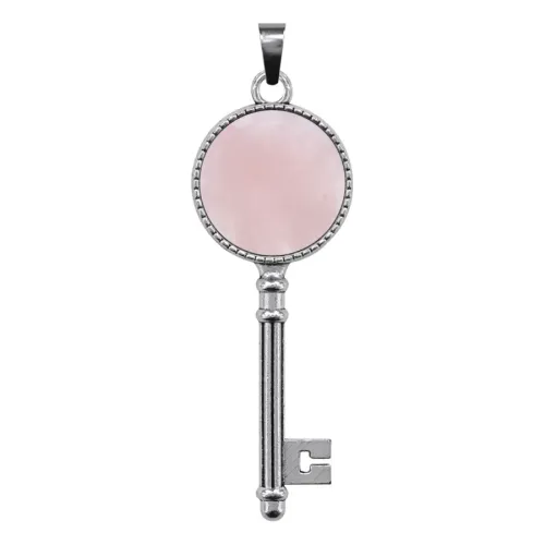 - Изготовлен из натурального розового кварца и металла с покрытием под серебро, что обеспечивает долговечность и привлекательный внешний вид.