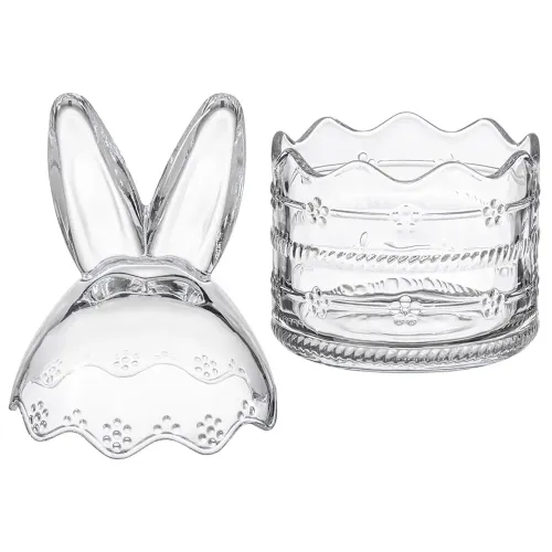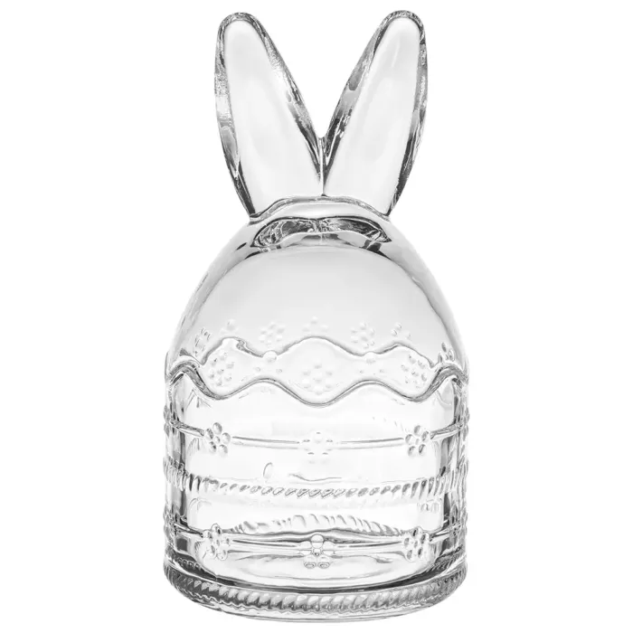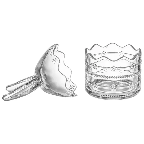 Емкость изготовлена из стекла, безопасного для контакта с пищевыми продуктами. Конструкция включает оригинальный рельефный край и декоративные элементы в виде ушек.