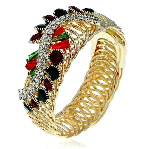 Браслет со стразами, безразмерный. Изготовлен из бижутерного сплава с открытым дизайном.