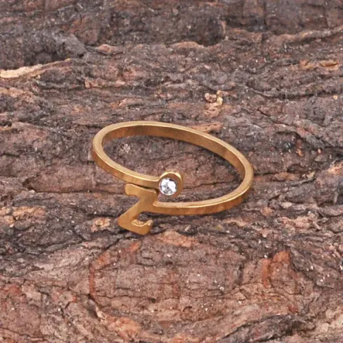 Безразмерное кольцо из бижутерного сплава с покрытием под золото и вставкой из страза.