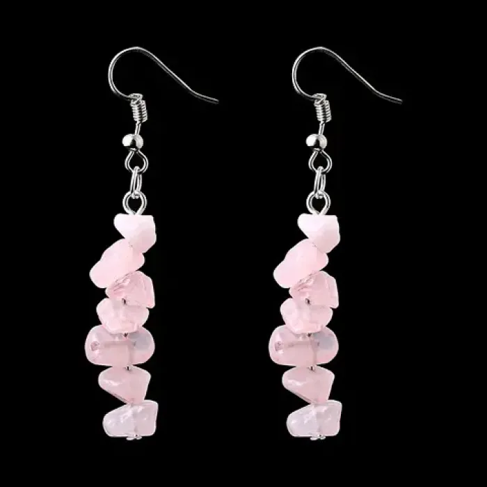 Асимметричные серьги для ношения. Изготовлены из бижутерного сплава с натуральным камнем розовый кварц.