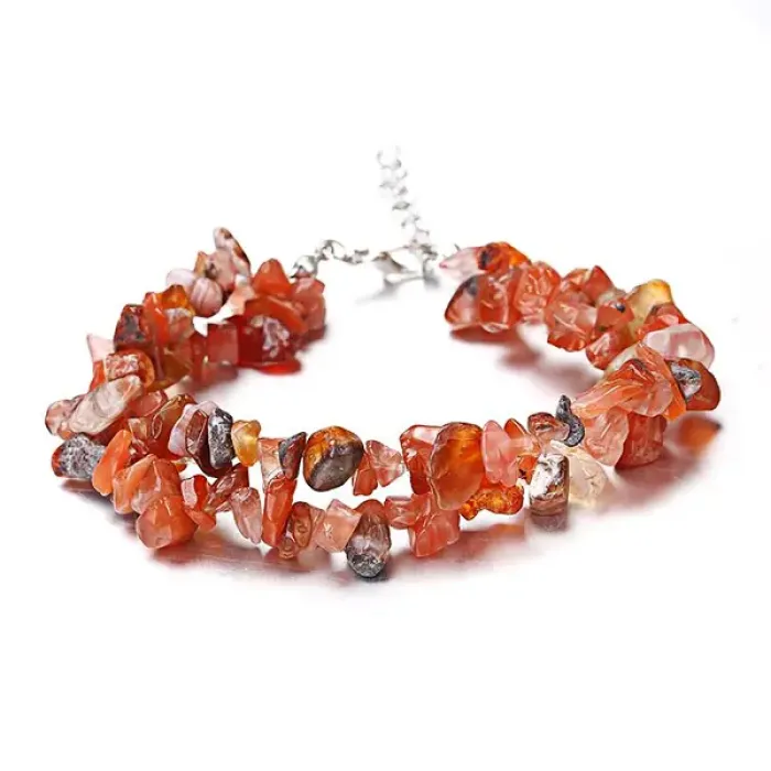 Браслет из натурального сердолика и бижутерного сплава с регулируемой длиной.