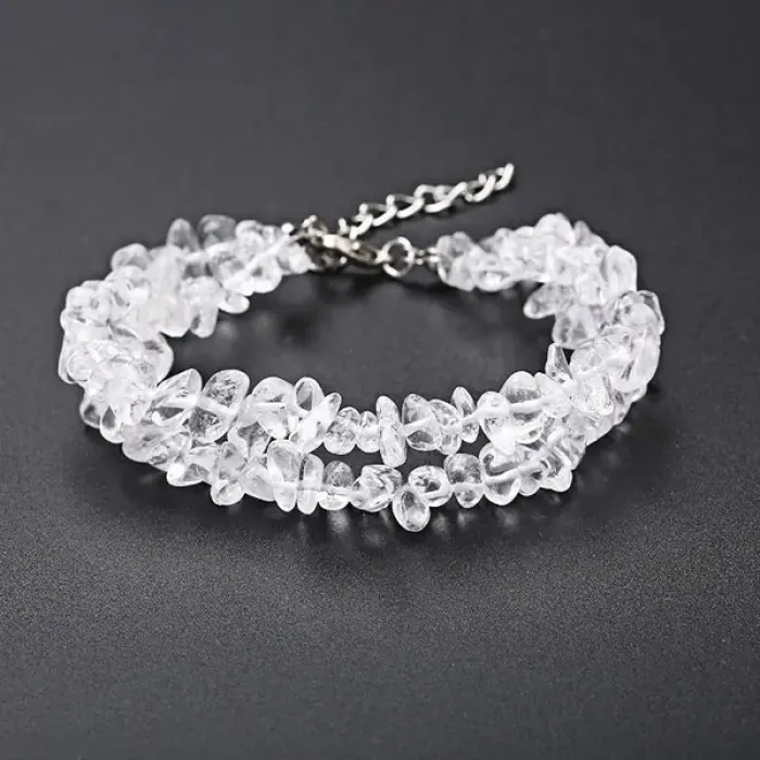 Браслет из натурального горного хрусталя — это не только стильное украшение, но и символ ясности ума и защиты. Изготовленный с использованием бижутерного сплава с покрытием под серебро, этот браслет станет великолепным дополнением к любому образу.