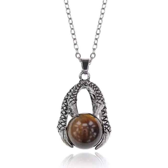 Кулон в форме когтя дракона из бижутерного сплава с вставкой из натурального тигрового глаза.