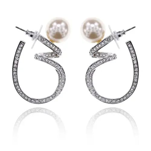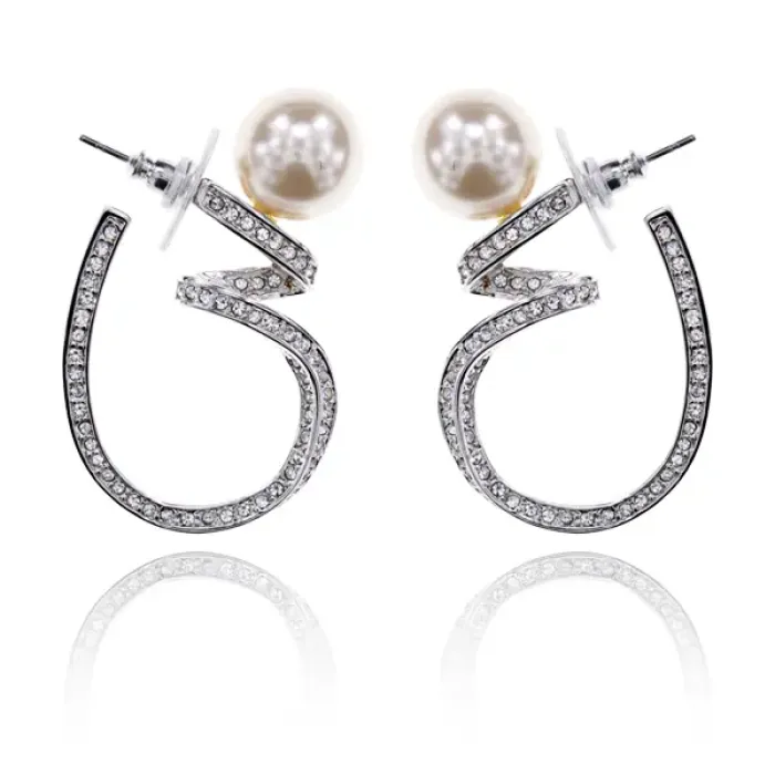 Серьги Спираль с жемчугом и стразами UD186