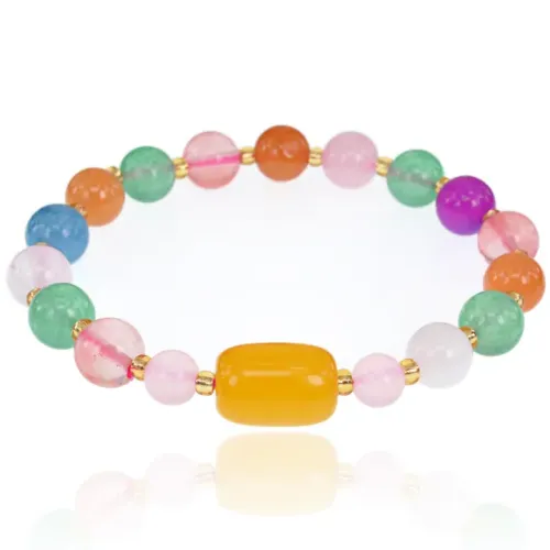 Стрейч-браслет с натуральными и синтетическими камнями. Регулируется по обхвату запястья.
