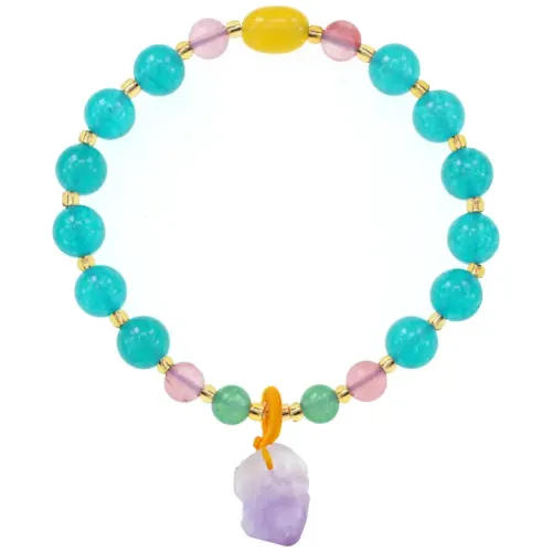 Стрейч-браслет с подвеской из аметиста для ношения на запястье. Регулируемая посадка, ширина около 10 мм.