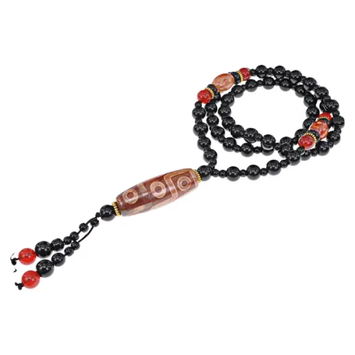 Чётки с бусиной Дзи 9 глаз. Материал — натуральный агат. Конструкция включает крупную бусину и мелкие бусины.