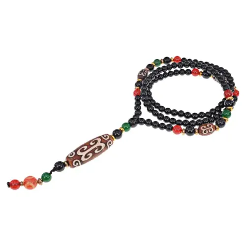 Размеры и комплектация: Большая бусина Дзи 40х15 мм, маленькие бусины Дзи 10х10 мм, остальные бусины диаметром от 4 до 8 мм.