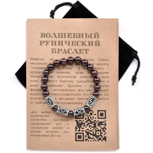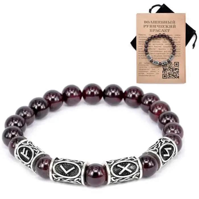Рунический браслет из граната с символами Феху, Кеназ, Гебо, Соулу.