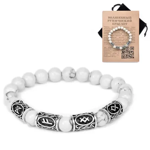 Рунический браслет из кахолонга с символами Дагаз, Феху, Ингуз и Одал. Конструкция стрейч.