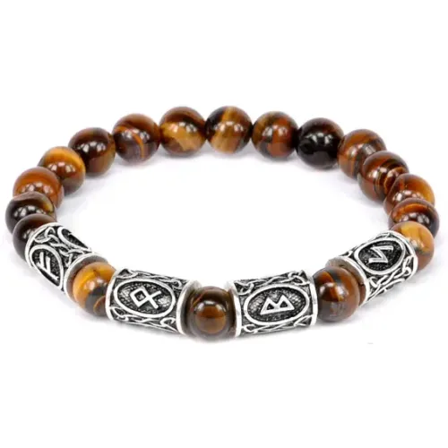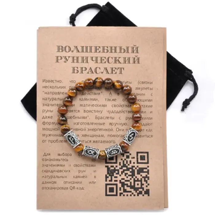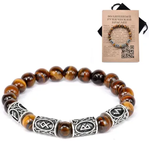 Рунический браслет из камня Тигровый Глаз с нанесёнными рунами.