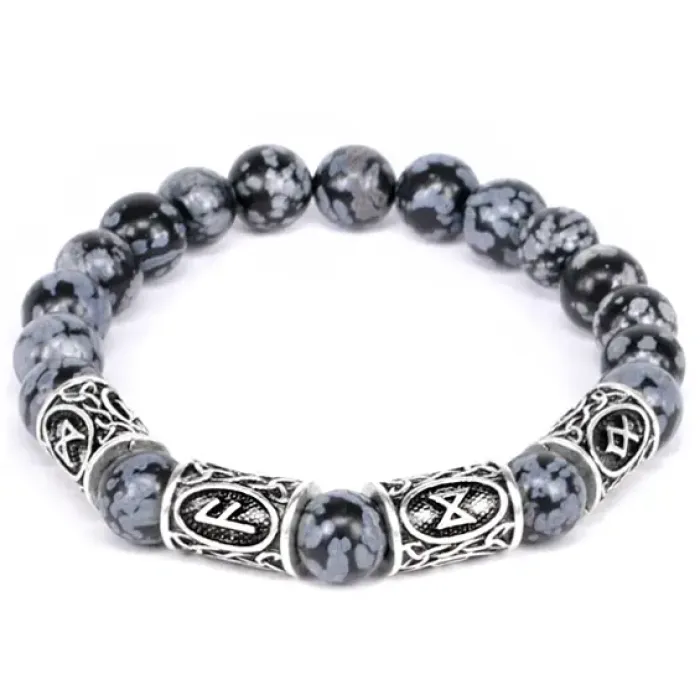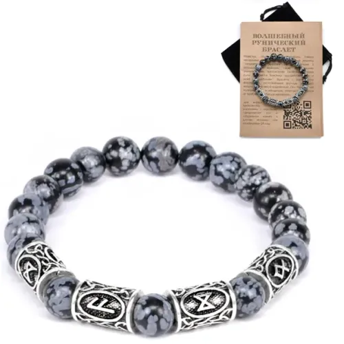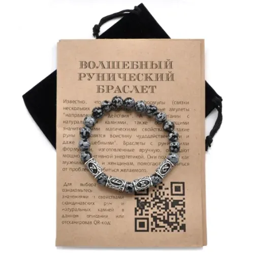 Рунический браслет Поддержка богов и предков — это уникальное украшение, выполненное из обсидиана. Этот стильный стрейч-браслет поставляется с черным мешочком в прозрачном пакете с европодвесом. Браслет содержит руны Дагаз, Ансуз и Одал, которые традиционно ассоциируются с процветанием и благосостоянием.