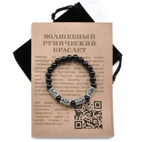 Рунический браслет Защита от энергетических вампиров — это не только стильный аксессуар, но и мощный оберег. Изготовленный из черного агата, он традиционно ценится за свои защитные свойства. Браслет имеет удобную стрейч-форму и поставляется в комплекте с черным мешочком в прозрачном пакете с европодвесом.