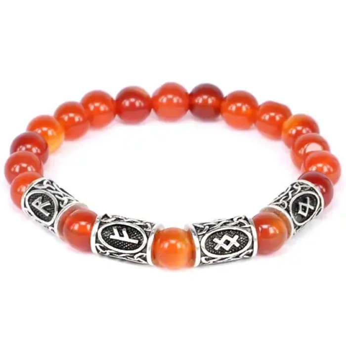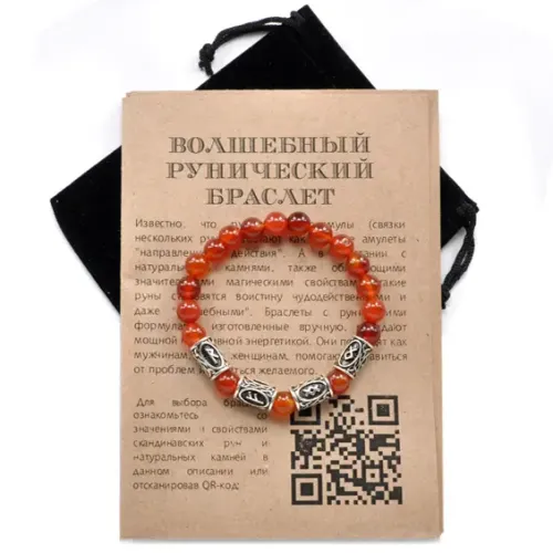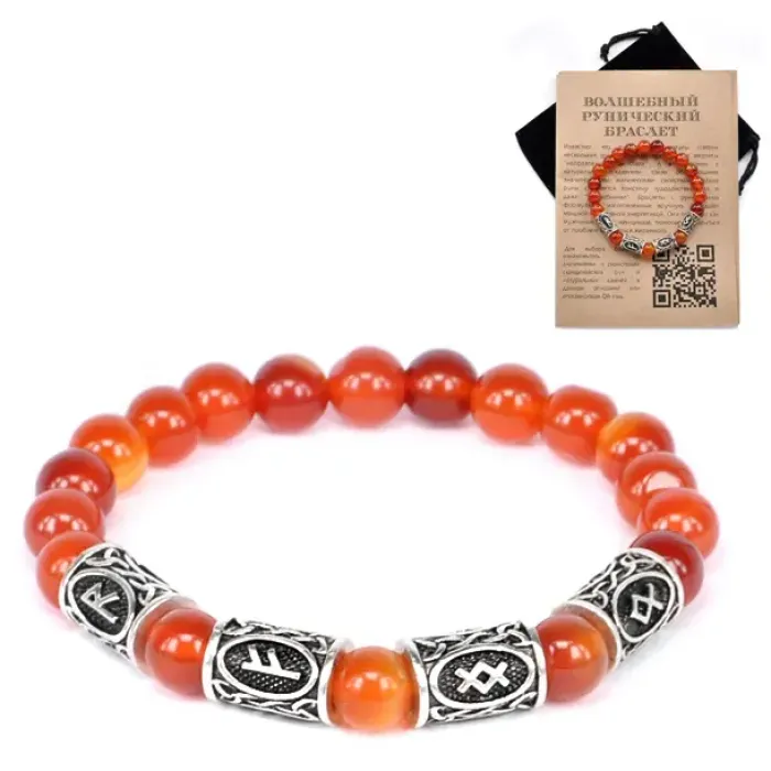 Рунический браслет из сердолика с нанесёнными символами. Имеет стрейч-дизайн.