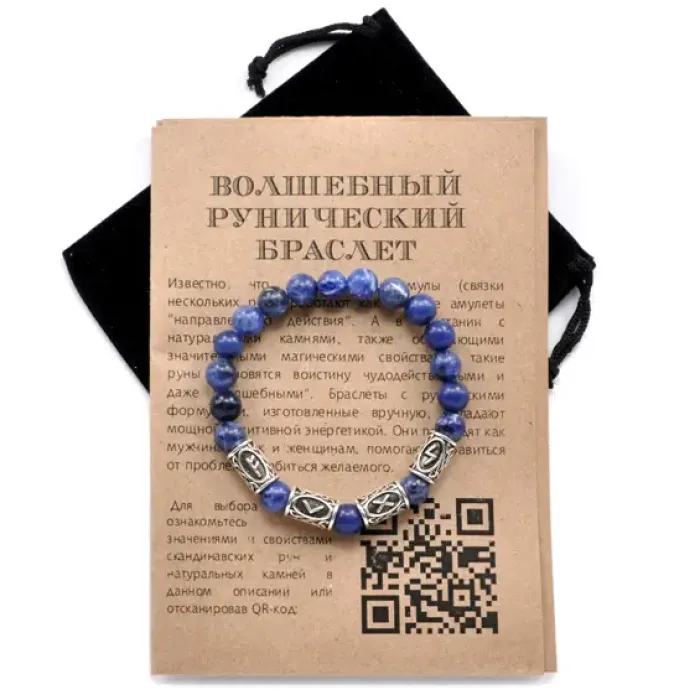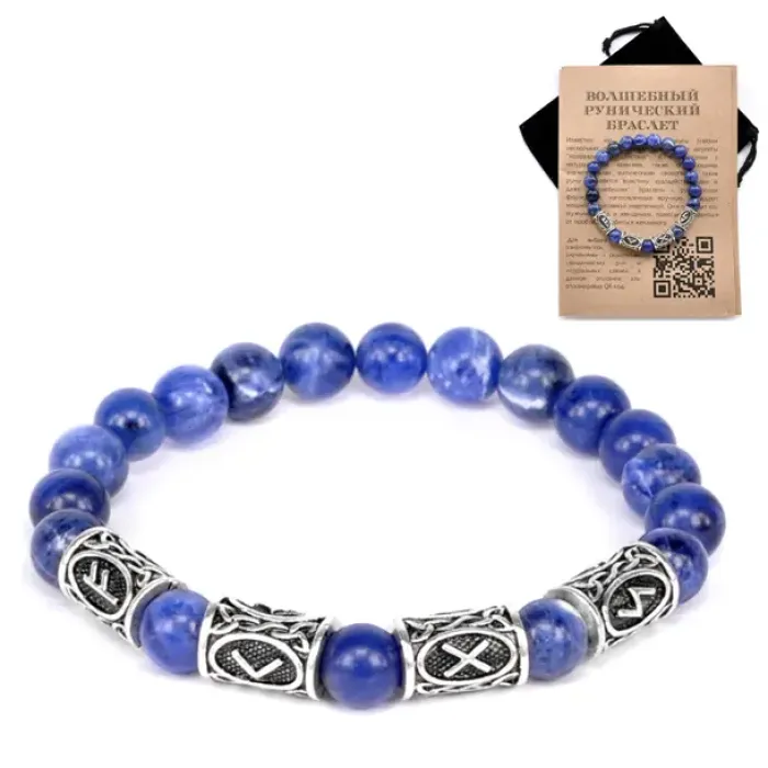 Рунический браслет Привлечение клиентов — это уникальный аксессуар, который сочетает в себе силу рун и красоту натурального камня. Изготовленный из содалита, этот браслет не только привлекает внимание, но и символизирует волю, мужество и женскую привлекательность. Основные руны: Феху, Кеназ, Гебо и Соулу помогают в достижении целей и успехе в бизнесе.